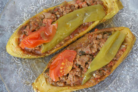 Traditional delicious Turkish food; Meat and Zucchini dish, (Turkish name: Kabak Karniyarik)