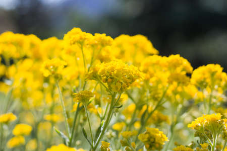 Flowering garden variety of Lobularia maritima, sweet alyssum natural macro floral background