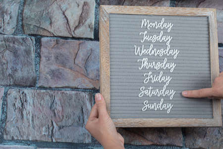 Happy weekdays poster written with letter symbols on the grey tissue