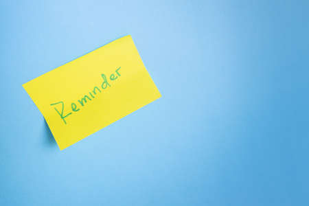 Hand with reminder sticky note ,empty space for text