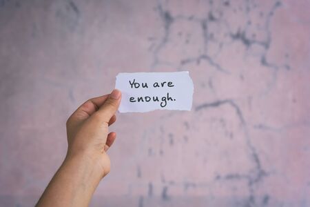 Motivation and inspirational quotes - You are enough. Blurry background.