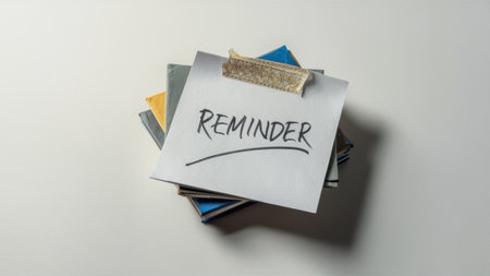 Handwritten note reminder home office personal organization minimalist space close-up motivation