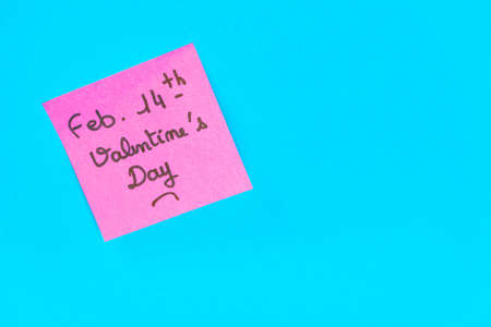 A closeup shot of a pink romantic Valentine's Day note on a blue surface