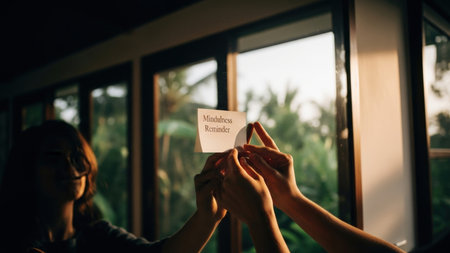 Two people hold a small note against a window bathed in warm, golden sunset light. Their silhouetted hands suggest collaboration, hope, or a shared, intimate moment.
