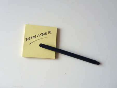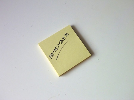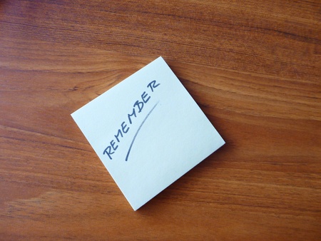 Reminder, text is written on a piece of paper and a red background. Do not forget