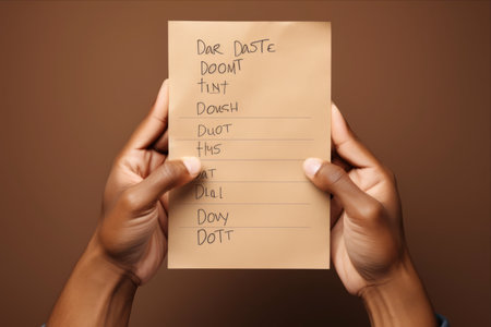 Man holding memo papers with inspirational quotes on brown background. Setting personal boundaries — decision-making moment with sticky notes, brown backdrop