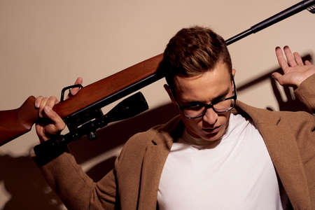 portrait of a man Gangster aggression crime shooting studio lifestyle