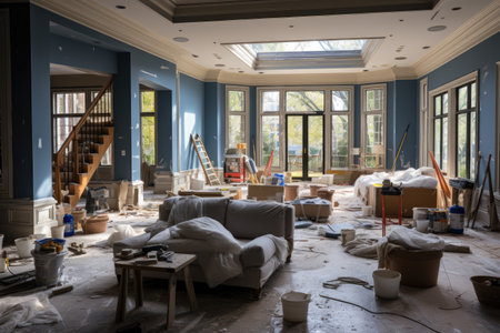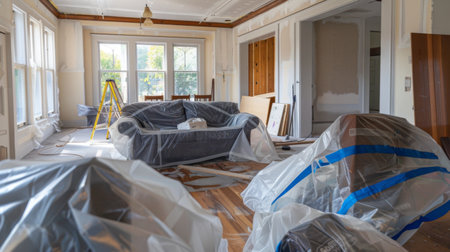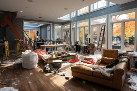 Modern Apartment Living Room Interior Repair Illustration Generative AI