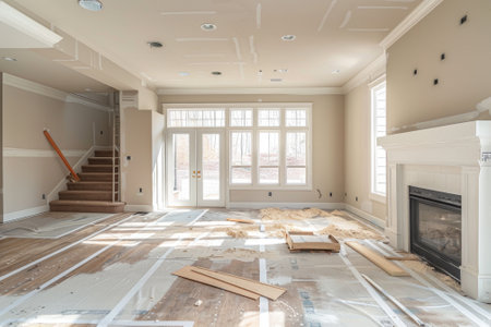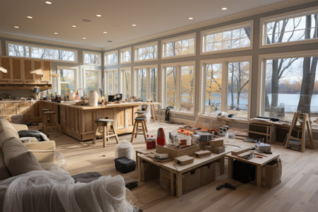 Apartment renovation with space to describe the company's construction services. Generative AI.