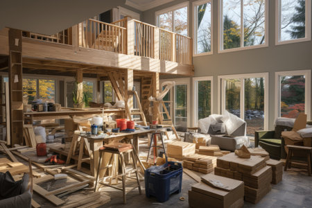 Demolition of wall to create an open floor plan in home renovation AI Generative