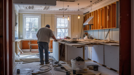 A man doing his own house renovation, tackling a solo project