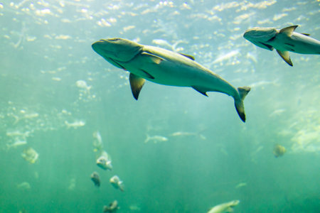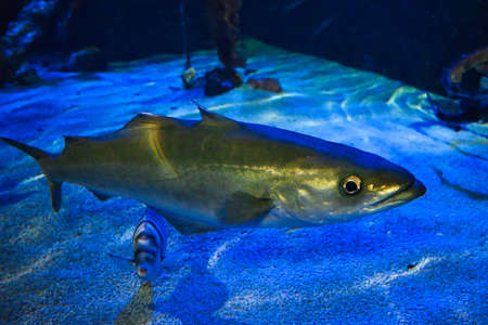 Fish swims in the aquarium in the aquarium. The inhabitants of the sea. Sea fish. Fish in the aquarium