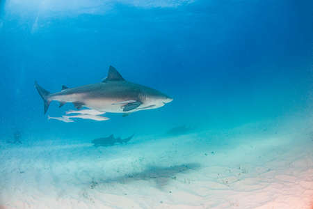 A Tiger Shark (Galeocerdo cuvier) in Bimini, Bahamas