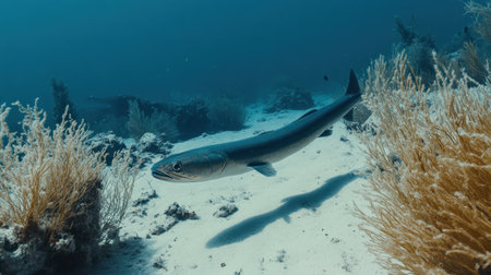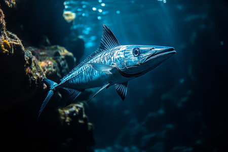 Barracudas fish swimming fresh underwater pictures AI Generated Image