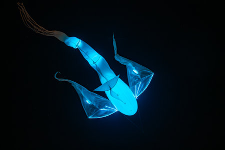 Bioluminescent sea creature sculpture at Staro Riga 2025, Latvia