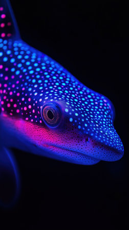Discover the enchanting beauty of a vividly colored fish with striking patterns showcased under blacklight. Its vibrant colors create a stunning visual experience.