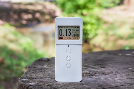 Radiometer dosimeter measures ionizing radiation. Investigation of the area using special measuring equipment. Radioactive contamination control