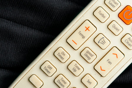 Air condition remote controller with buttons functionality closeup macro photo