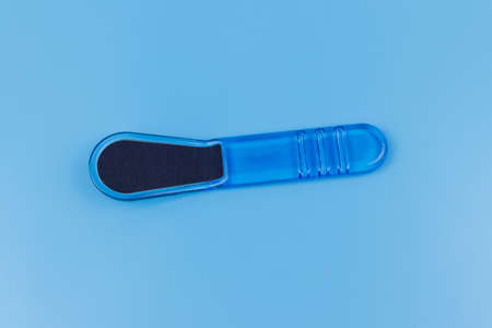 Set of tools for manicure and nail care on a blue background. Spa hand procedure, place for text.