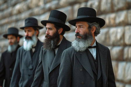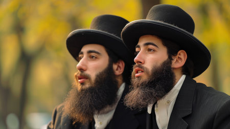 Jewish men in traditional clothing during the Jewish holiday of Sukkot.