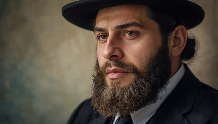 Generative AI, Portrait of religious orthodox jewish man, photo close up