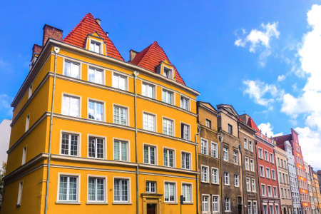 Beautiful yellow houses on the streets of Gdansk, Poland