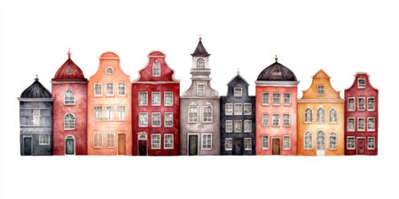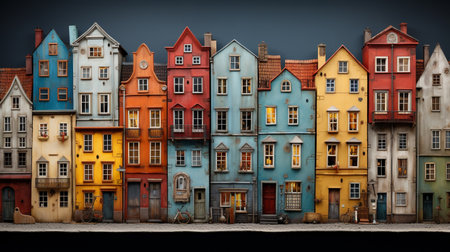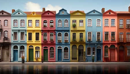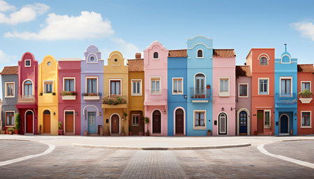 Colorful Coastal Residences A Vibrant Row of Houses with Traditional Architecture and Style.