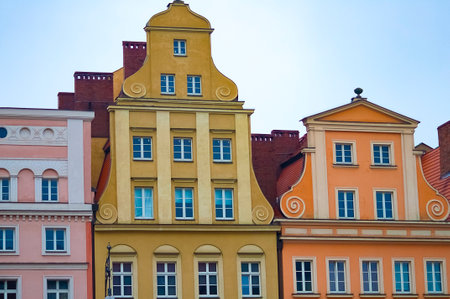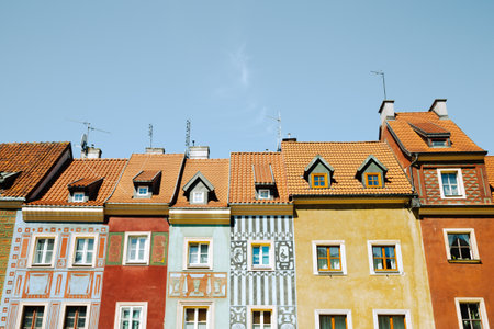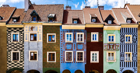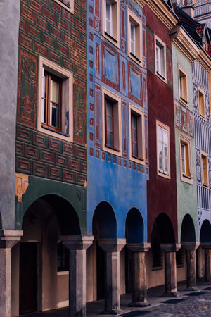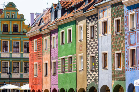 Colorful facades of buildings on the Main Square (Rynek) in Poznań, Poland, showcasing vibrant architecture