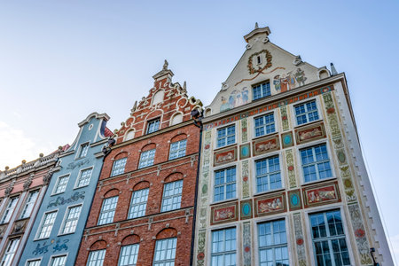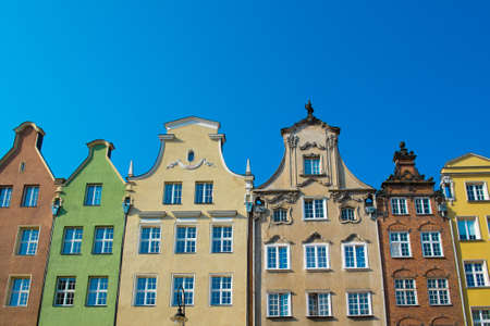 Facades of colorful historical merchant houses in the center of Gdansk, Poland, Europe