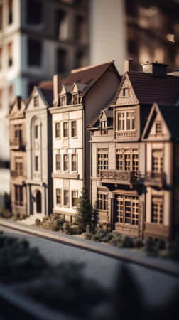 Colorful miniature houses in perfect rows create a whimsical urban cityscape.
