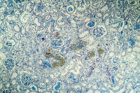 science medical anthropotomy physiology microscopic section of human kidney tissue background
