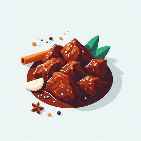 Thai food, pork ribs with spices and herbs. Vector illustration.