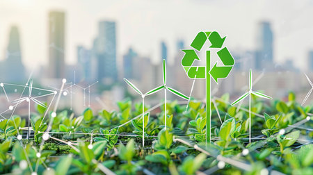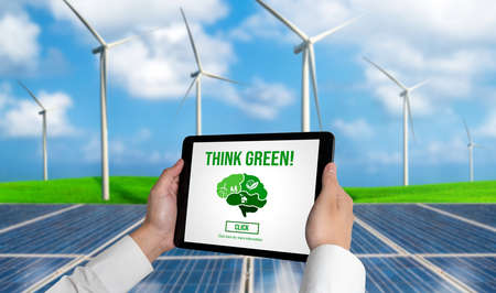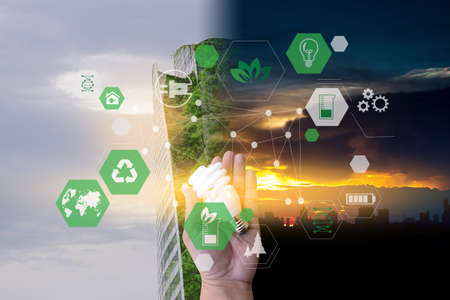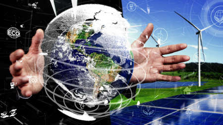 Sustainable development with renewable energy solutions, ecology concept, green business.