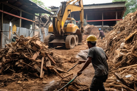 Workers Loading Recycled Construction Debris For Processing And Reuse