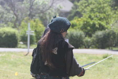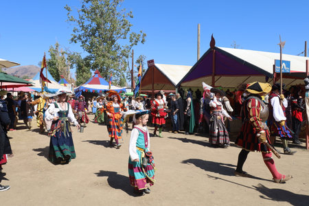 Irwindale, CA - USA - May 07, 2016: People in medieval costumes performing during The 54th Annual Renaissance Pleasure Faire.
