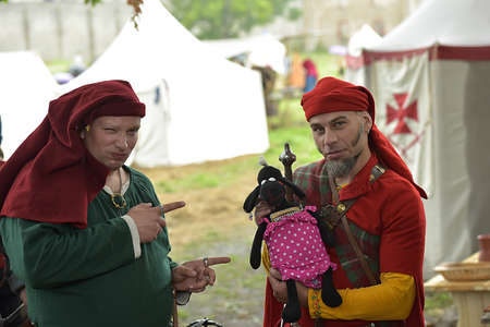 Editorial: 9th June 2019: Chatenois, France. Fancy-dress medieval carnival under fortress walls in Alsace.