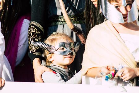 Paphos Cyprus March 01, 2020 View of unidentified people taking part in the Paphos carnival in the afternoon