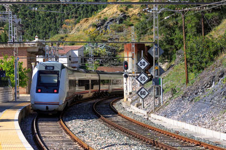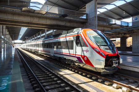 High-speed AVE train (CAF, Meinfesa, Siemens) in motion on railway. RENFE SNCF - Spanish National Rail. Renfe Class 252 Locomotive. March 02, 2022, Spain, Valencia.
