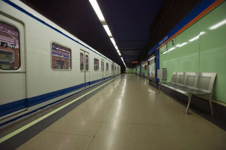 MADRID, SPAIN - FEBRUARY 02, 2019: Station and empty train in the usually busy train and urban transport station of Chamartin.