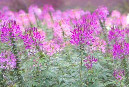 Close up Polanisia Vicosa or Wild Caia cleomevis flower on blur background with leaves. (Scientific name Cleome viscosa)