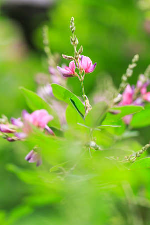 Lespedeza maximowiczii flowers. Fabaceae deciduous shrub. Purple-red butterfly-shaped flowers bloom in racemes from June to July.