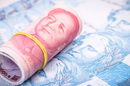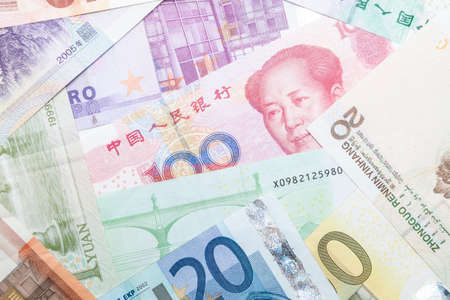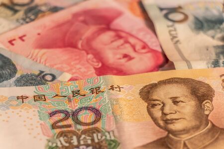 Chinese paper money, yuan in various denominations. China money as a business background for your design