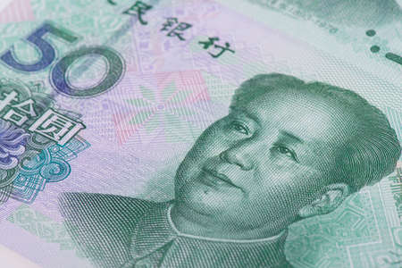 Portrait of Mao Zedong on China Paper Currency. Macro