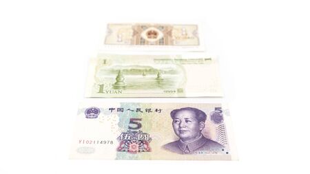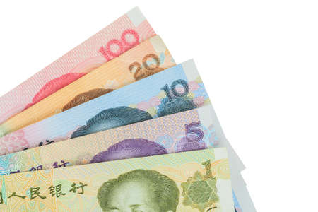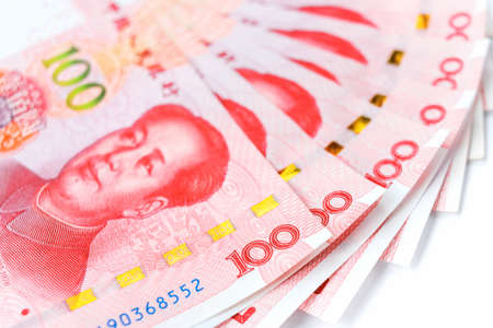 Chinese or Yuan banknotes money from China's currency, close up on white background