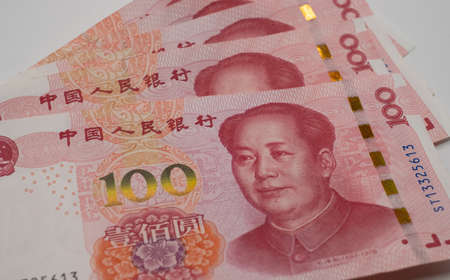 Official currency of China. Renminbi, abbreviation RMB. Yuan basic unit of the renminbi. Set of one hundred yuan close up. Chinese money. Business concept.