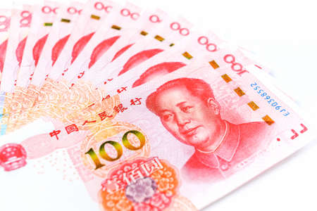 Cash of China RMB100 on the white background