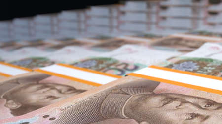 Renminbi official currency of China. Abbreviation RMB. Yuan basic unit of the renminbi. Set of one hundred yuan close up. Chinese money. Business concept.