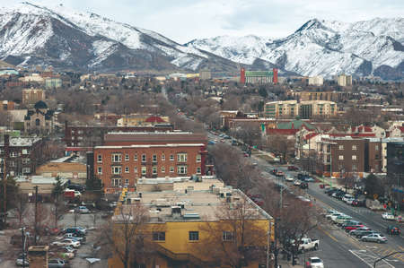 view of Salt Lake city dowtown at sunset. Utah. United States