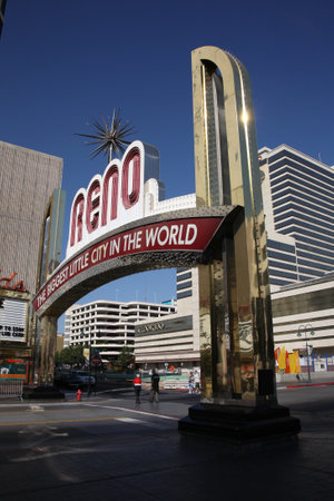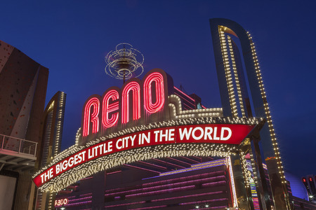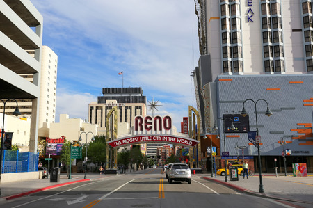 Reno, USA - May 31, 2016: Reno, known as The Biggest Little City in the World, is famous for it's casinos, and is the birthplace of the gaming corporation Harrah's Entertainment.