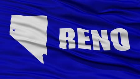 Closeup of Reno City Flag, Waving in the Wind, Nevada State, United States of America